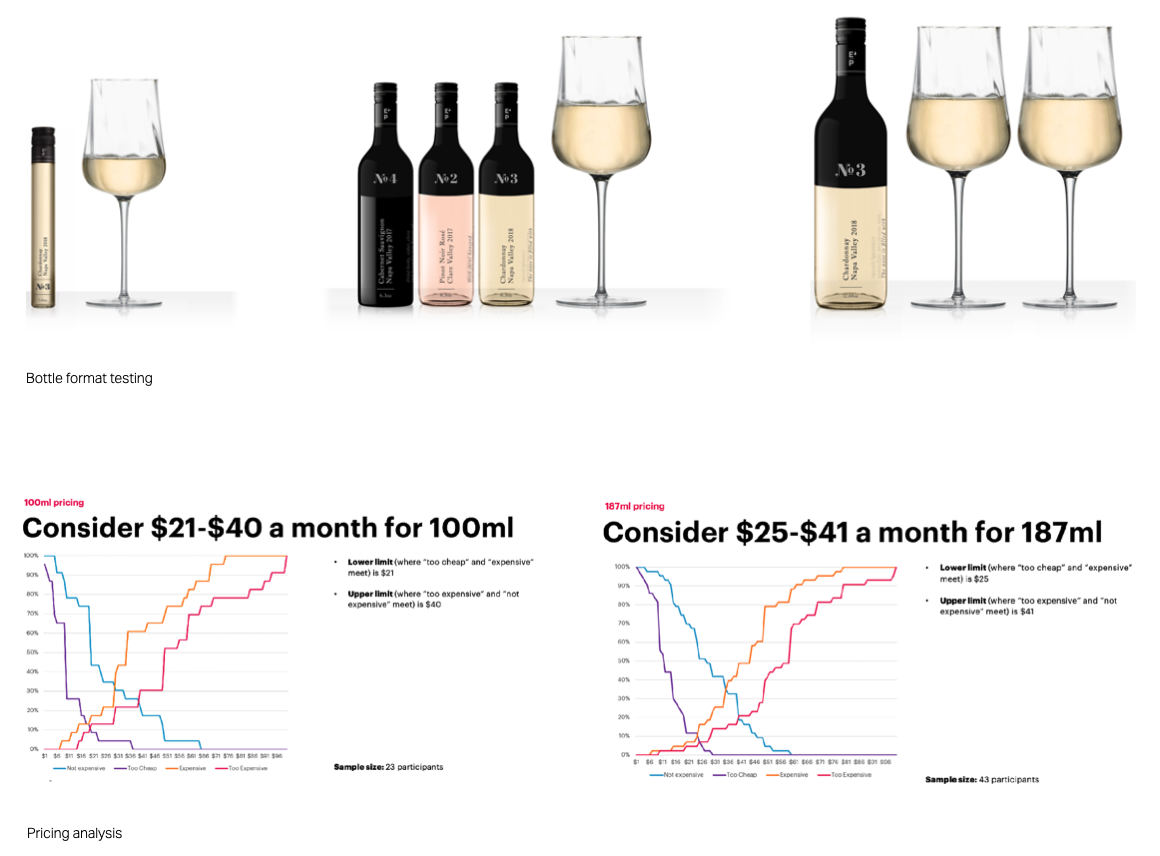 Our hero concept was an at-home tasting experience of small bottled wines, with a mix of known and boutique brands. The next stage was to refine the proposition for maximum impact.